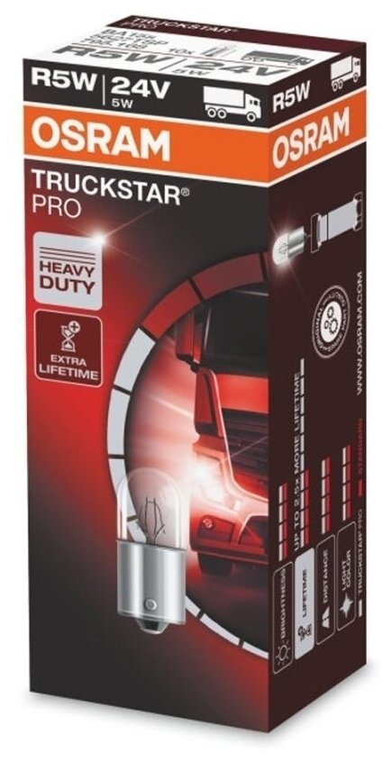 OSRAM 5627TSP R5W 5W 24V Лампа TRUCKSTAR PRO 1шт Складная картонная коробка информация: