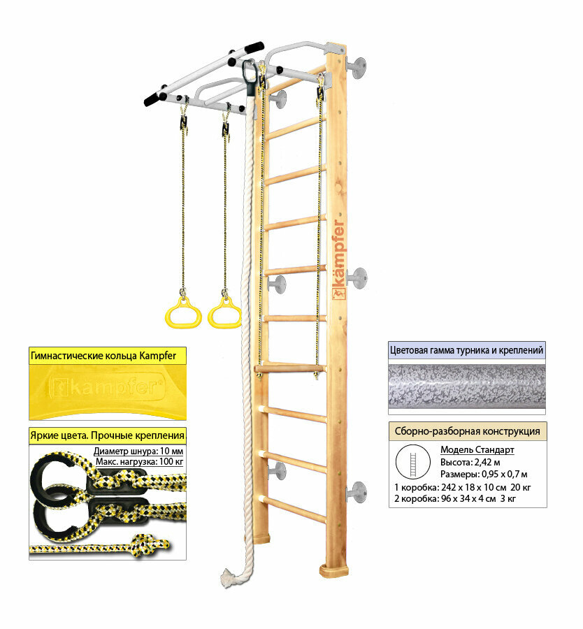 Шведская стенка Kampfer Helena Wall, №1 натуральный Стандарт белый турник информация: