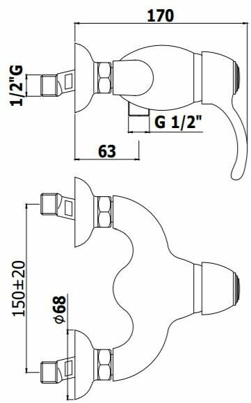 Смеситель на раковину настенный Эверест B46-350 с круглым поворотным изливом, кран-буксы 1/2", хром