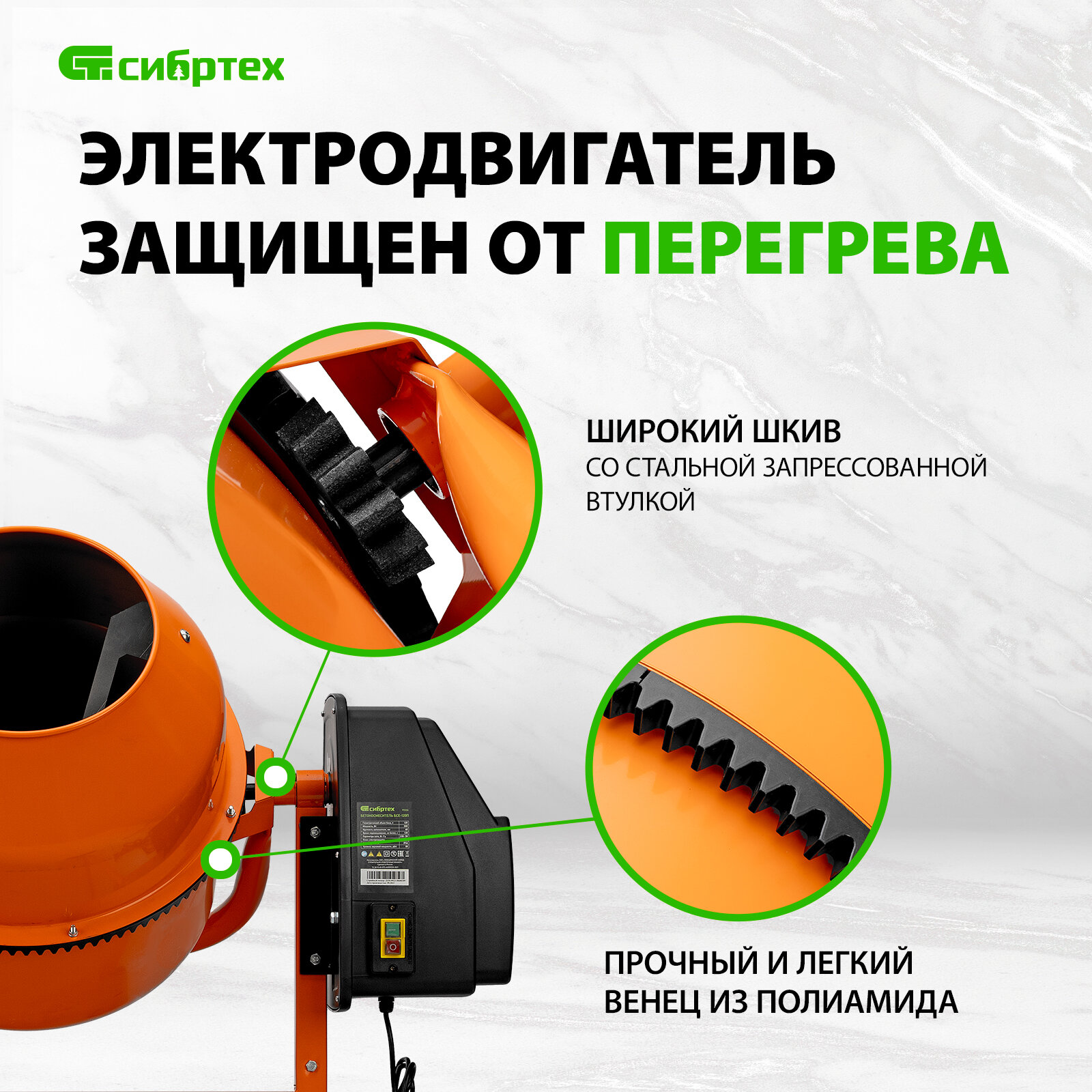 10 цен на Бетоносмеситель Сибртех БСЕ-120П, 120 л, 500 Вт, полиамидный венец 95506