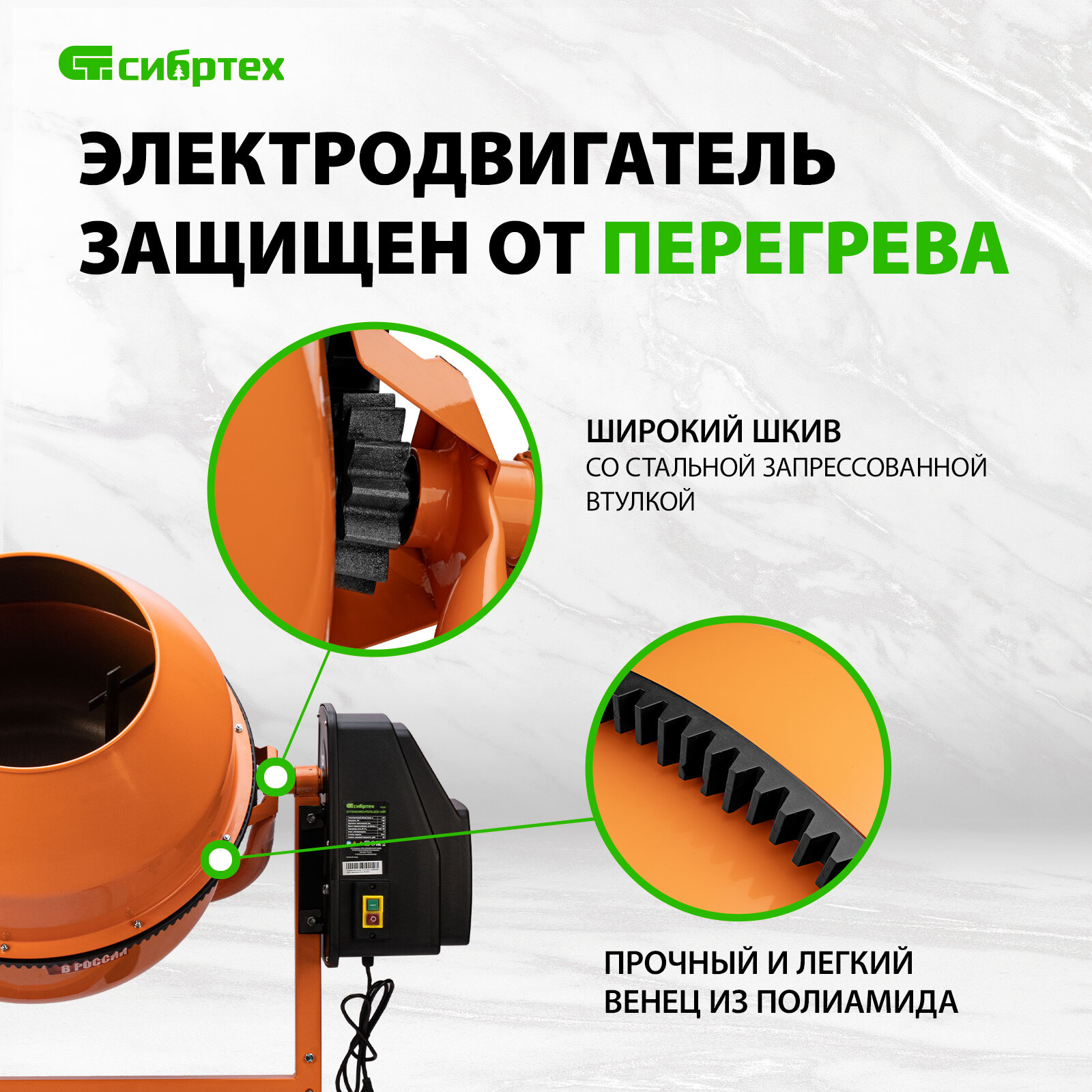 10 цен на Бетоносмеситель Сибртех БСЕ-200П, 200 л, 1000 Вт, полиамидный венец 95510