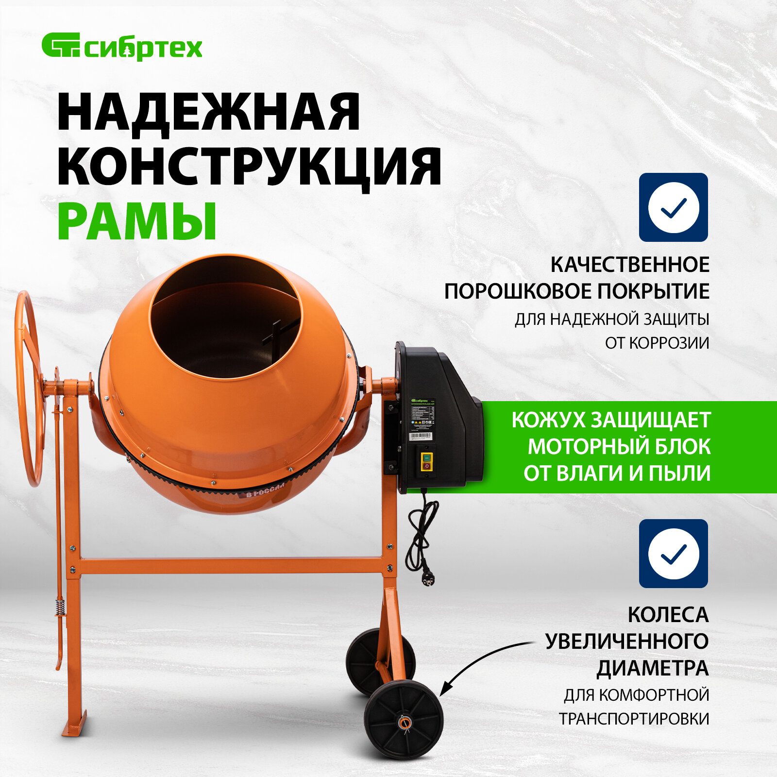 Отзывы на Бетоносмеситель Сибртех БСЕ-200П, 200 л, 1000 Вт, полиамидный венец 95510