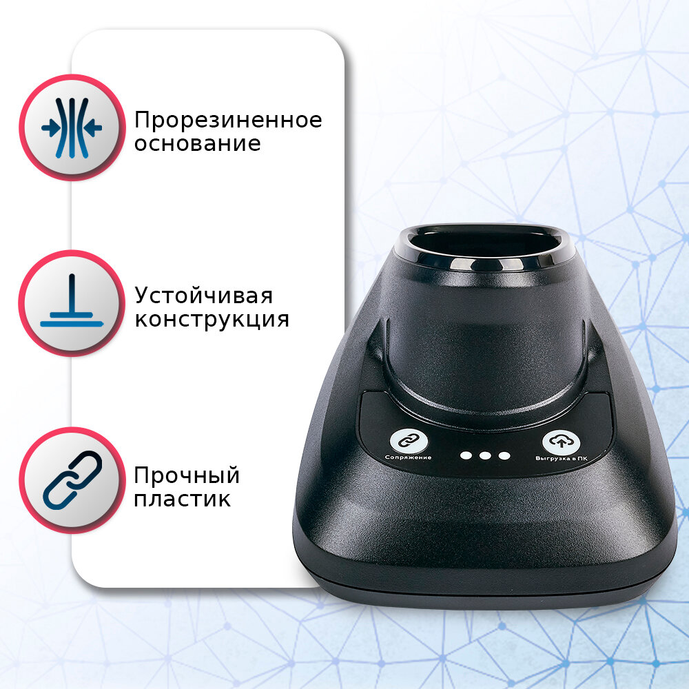 | Комплектация | Зарядно-коммуникационная подставка (Cradle) для сканера МойPOS MSC-3208WEC2D v.2, арт. 4539, черная |