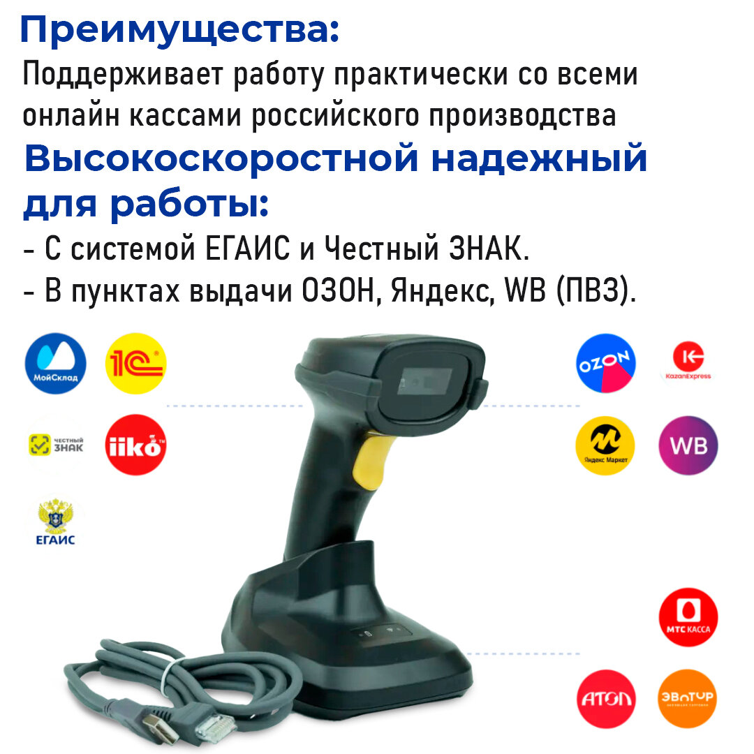 Беспроводной 2D сканер штрихкода для маркировки, ЕГАИС, Честный знак, Атол, Меркурий, идеален для ПВЗ