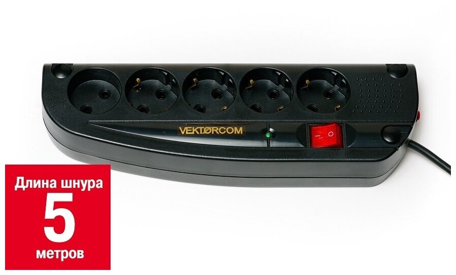 Фильтр сетевой 5м, 4гн с/з+1 б/з, черный, VektorCOM информация: