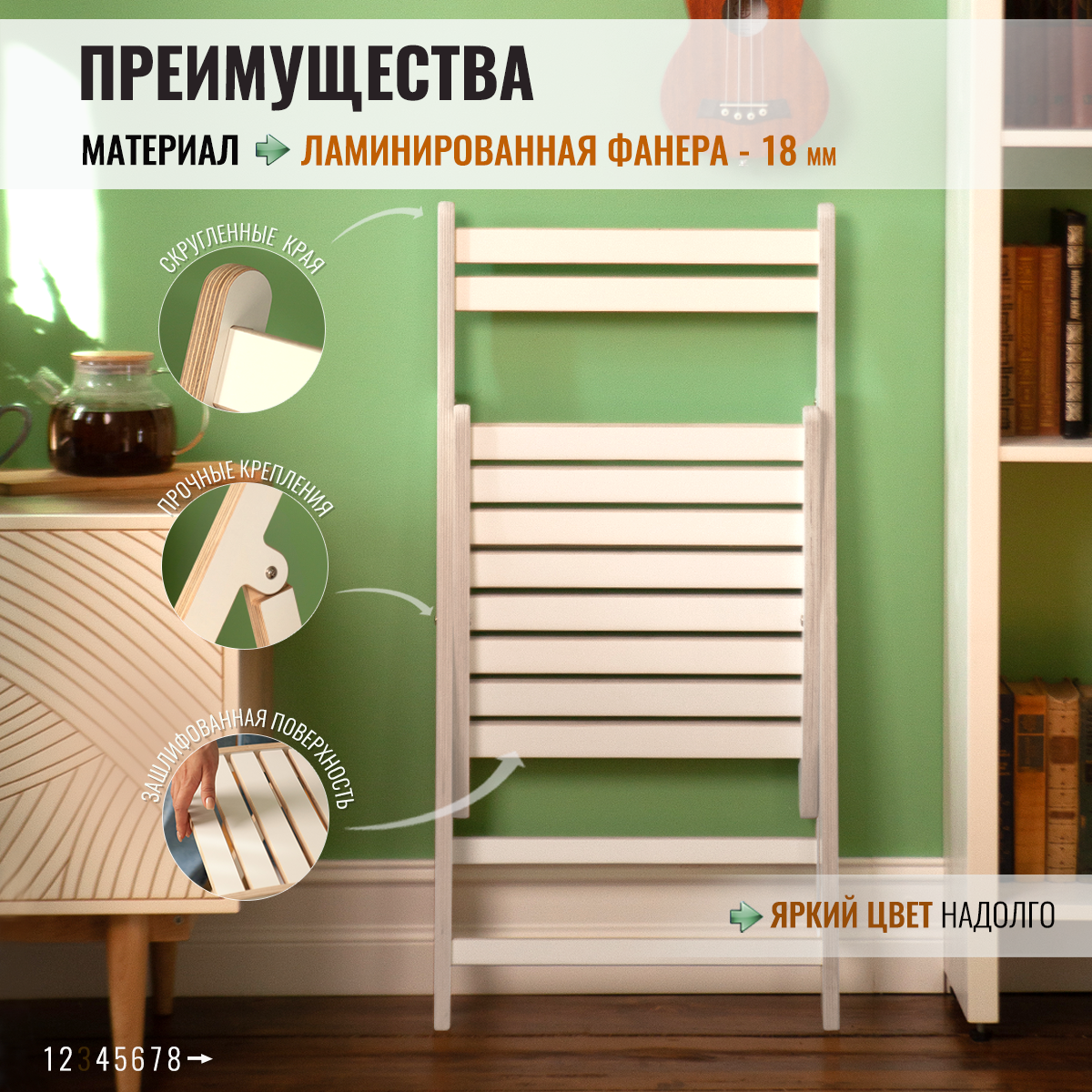 Стул деревянный складной со спинкой белый white Стройарт информация: