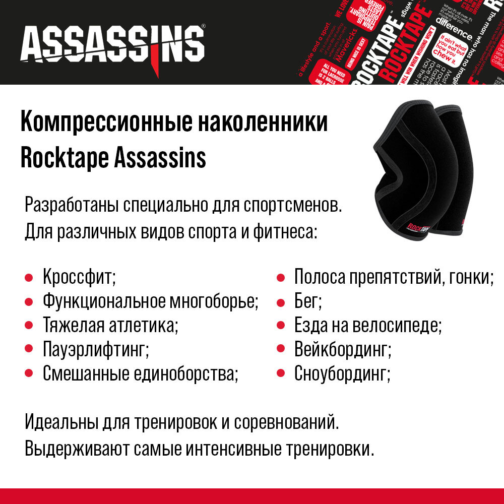 Компрессионные наколенники Rocktape Assassins, черные, толщина 7 мм, размер XL информация: