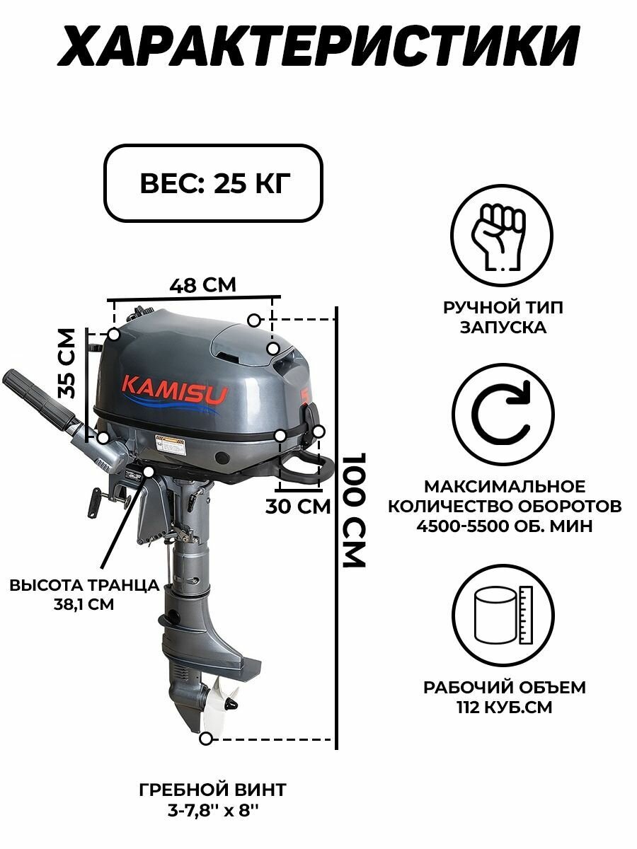 Бензиновый лодочный мотор KAMISU F 5 BMS 4-х тактный информация: