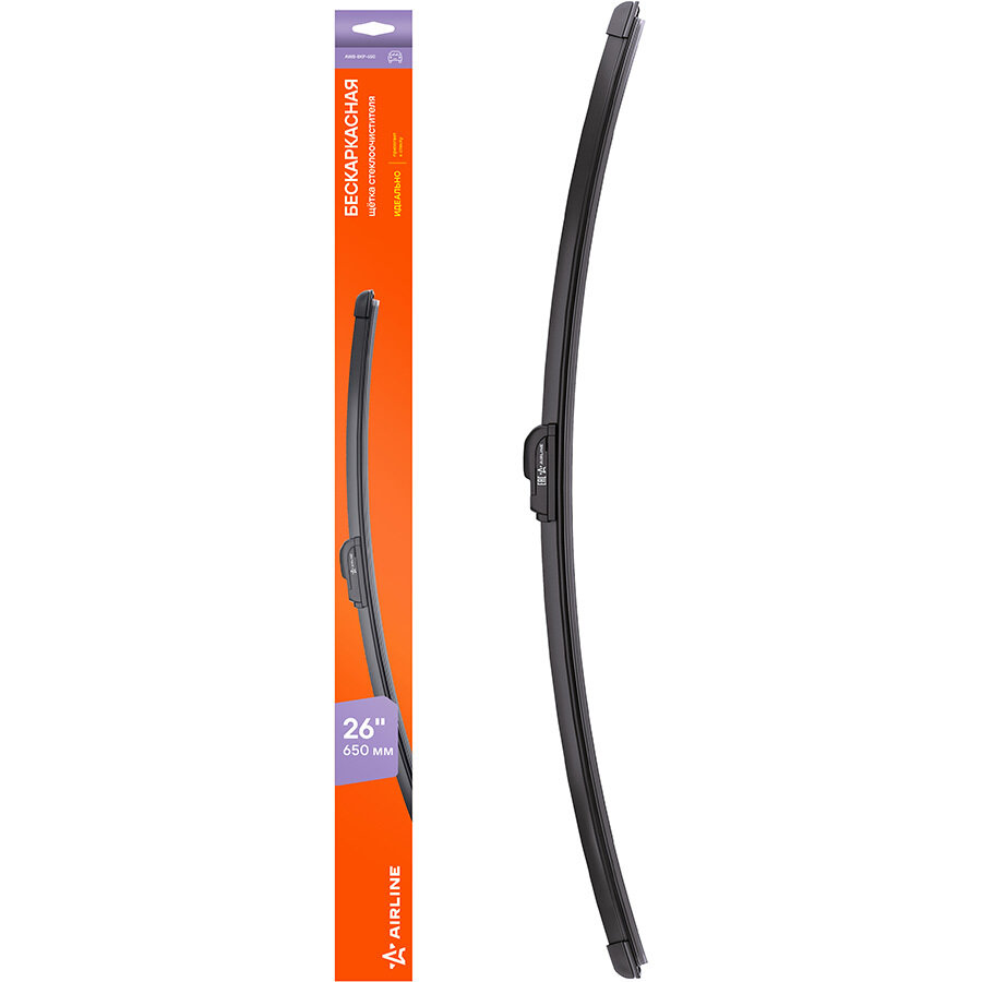 Щетка стеклоочистителя 650мм (26") бескаркасная, 1 адаптер (Hook 9x3, 9x4 mm - Крючок 9x3, 9x4 мм) AWB-BKP-650 AIRLINE 450 ₽