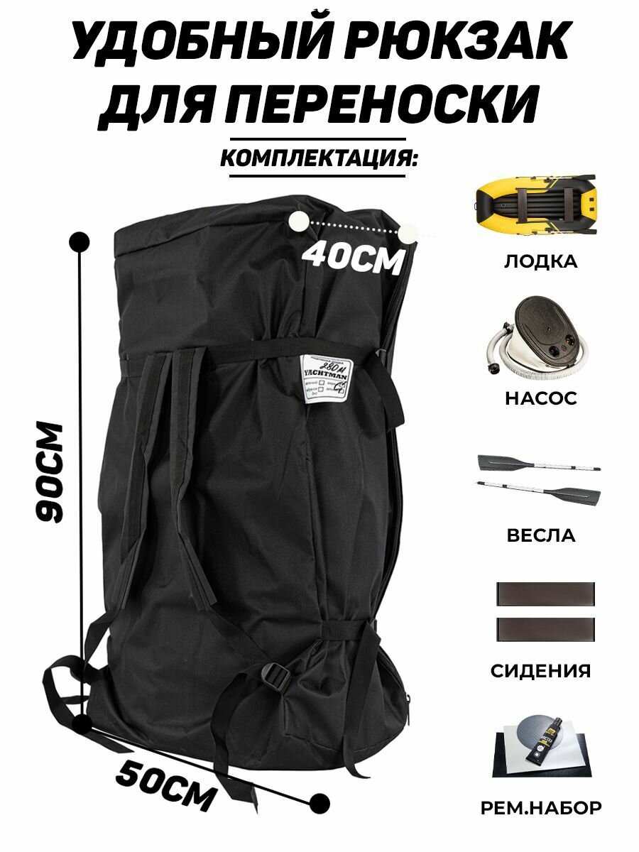 Надувная лодка пвх YACHTMAN 280 МНД, надувное дно, 2х-местная информация: