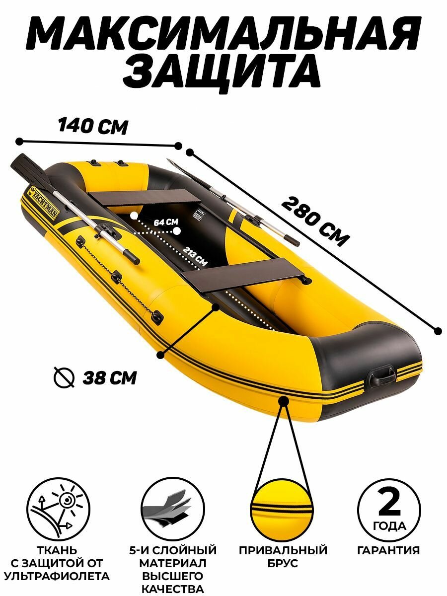 Надувная лодка ПВХ YACHTMAN-280 МНД надувное ДНО с усилением жёлто-черная