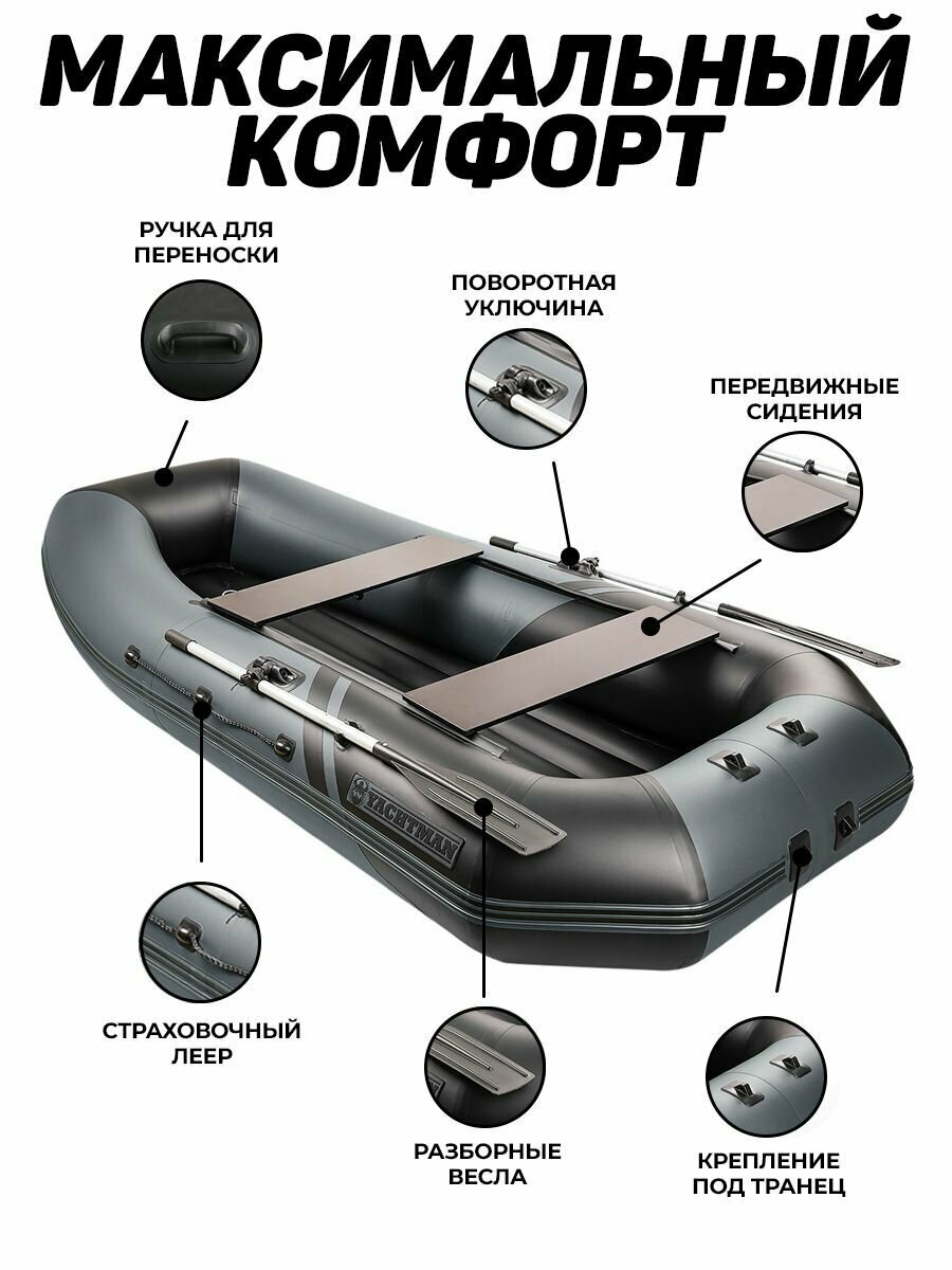 Лодка ПВХ YACHTMAN 300 МНД, моторно-гребная, надувное дно, серый/чёрный информация: