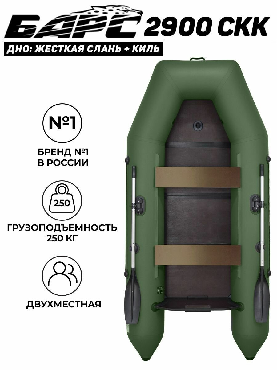 Лодка пвх под мотор Барс 2900 СКК, двухместная, сварные швы, слань в комплекте, зеленый 33 487 ₽