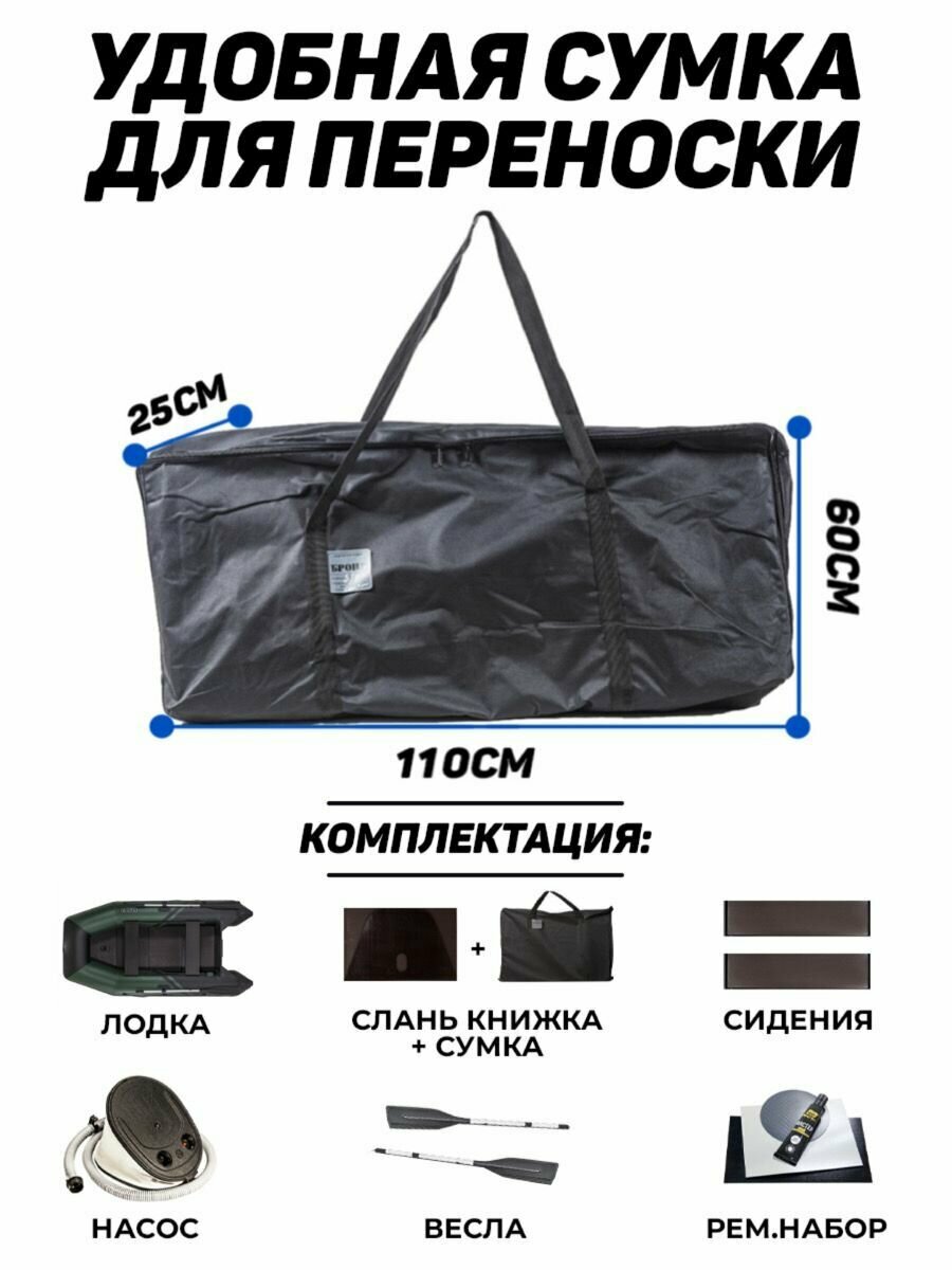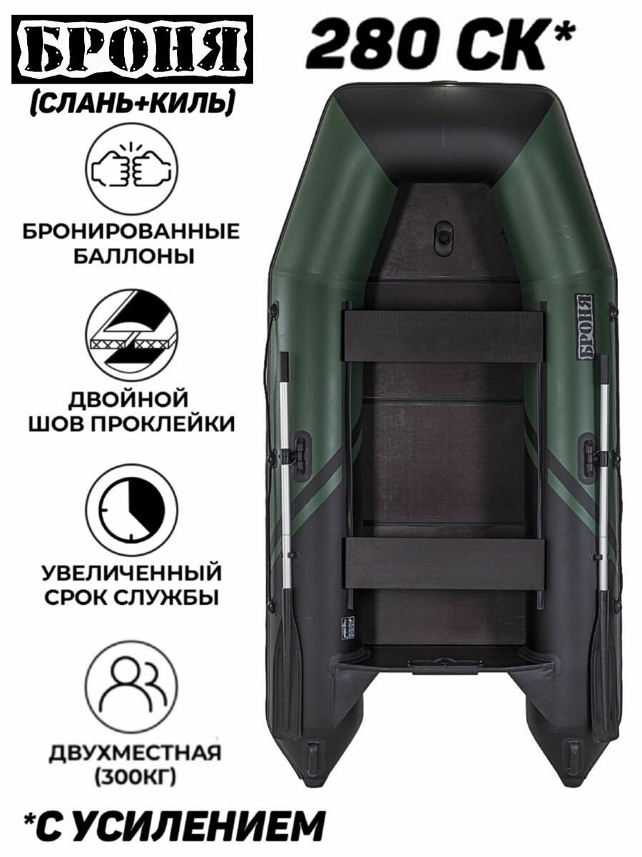 Надувная лодка ПВХ под мотор БРОНЯ-280СК, сплошной пол в комплекте, зелёный/чёрный информация: