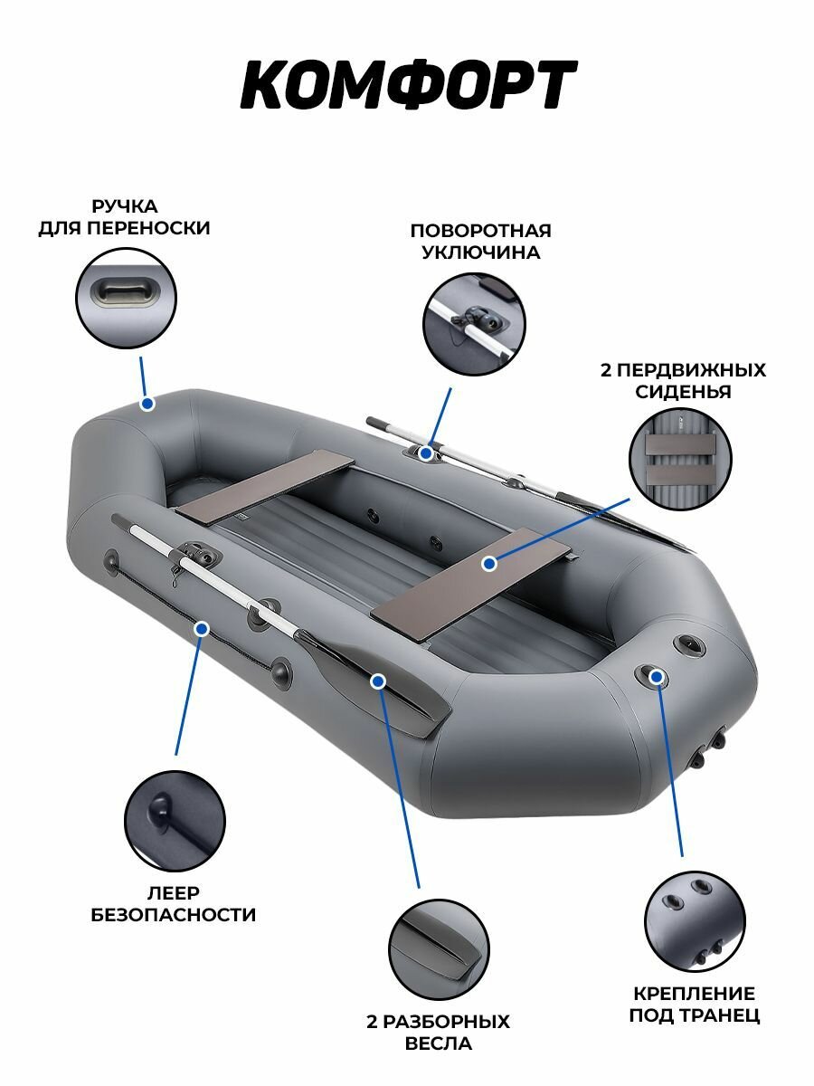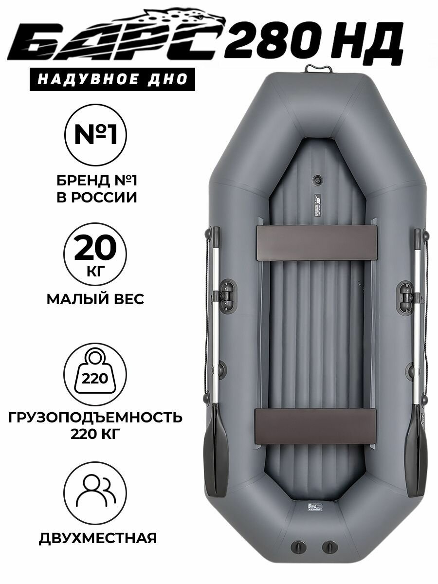 10 цен на Лодка надувная для рыбалки Барс 280 НД графит, надувное дно