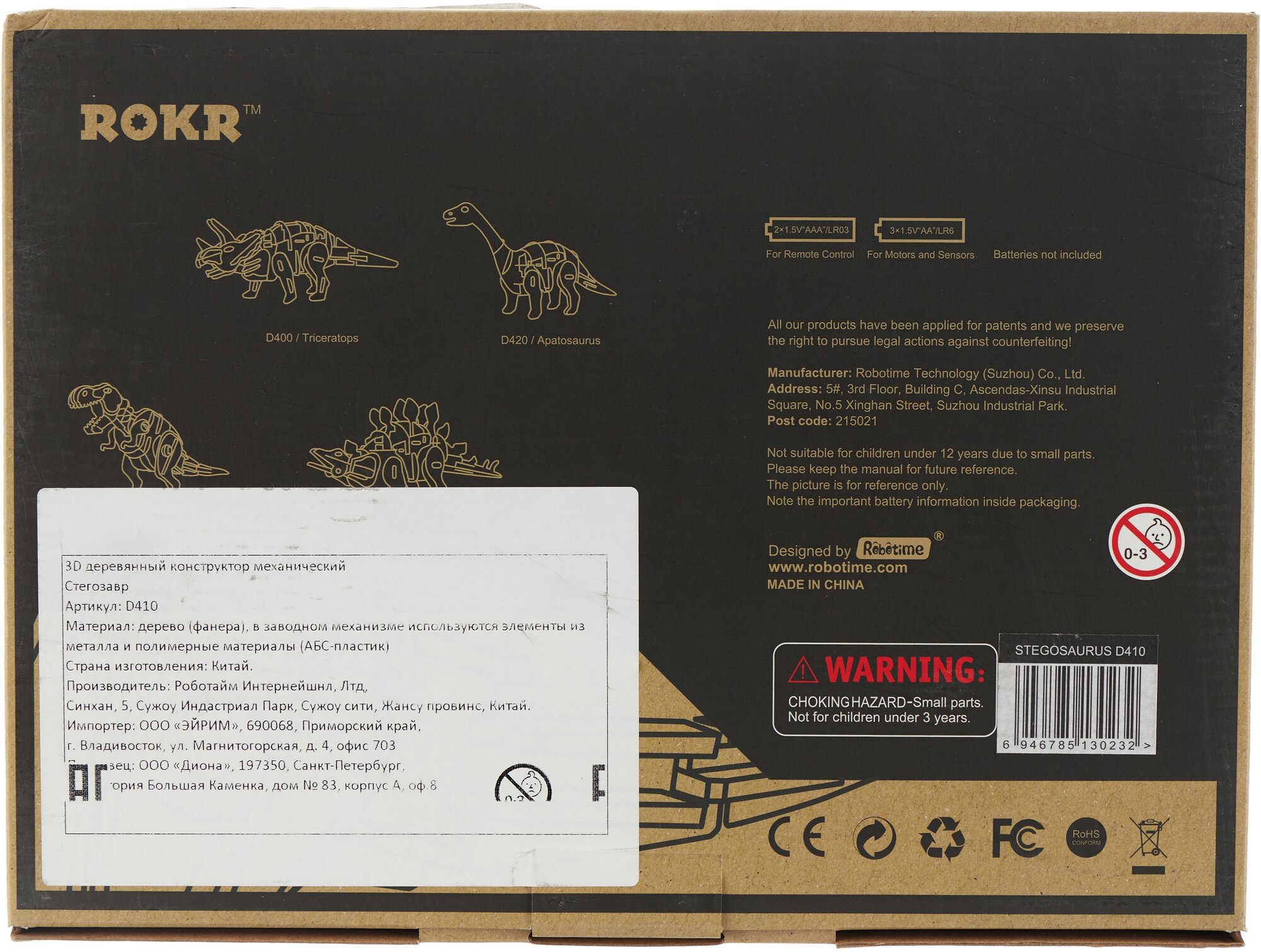 Деревянный конструктор Robotime на управлении - Стегозавр D410 информация: