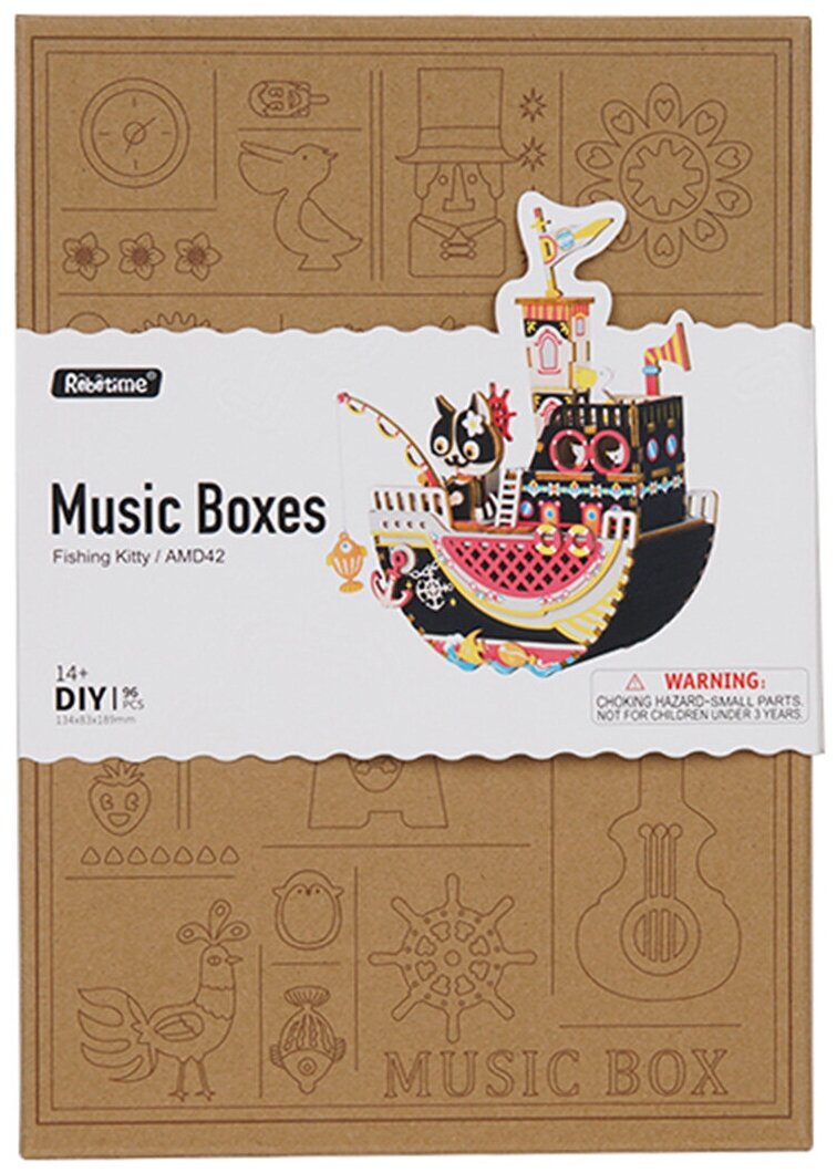 Деревянный конструктор Robotime Музыкальная шкатулка Рыбалка Китти информация: