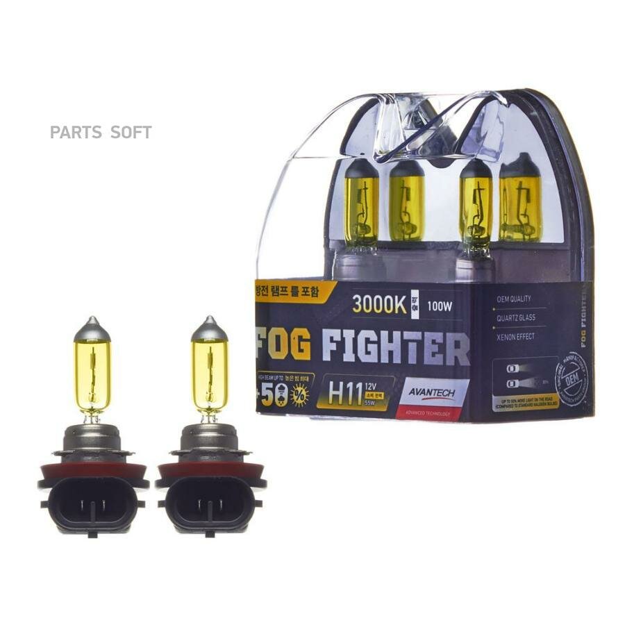 Отзывы на AVANTECH AB3011 Лампа галогеновая H11 12V 55W (100W) 3000K компл 2шт.