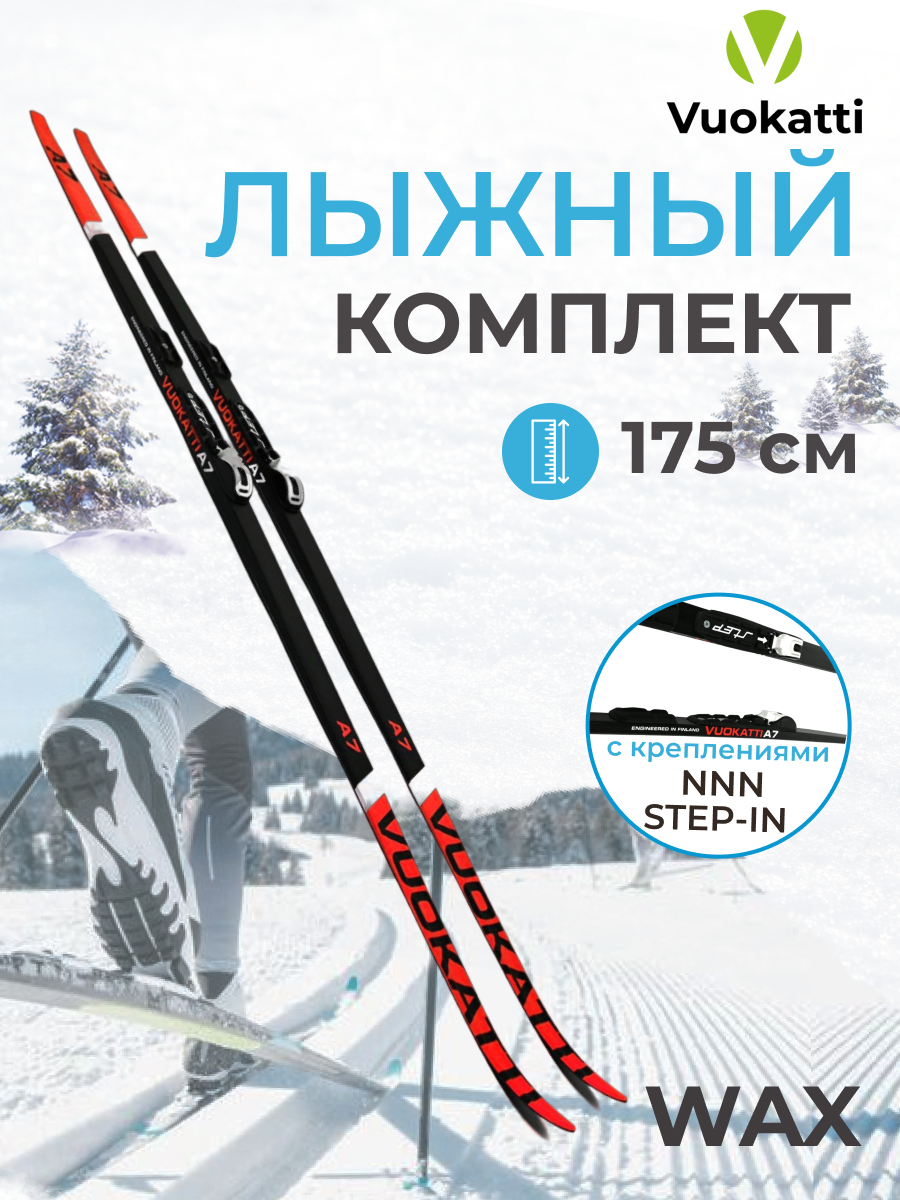 10 цен на Беговые лыжи VUOKATTI 175 см с креплением NNN Step-in (Wax) Black Red без палок