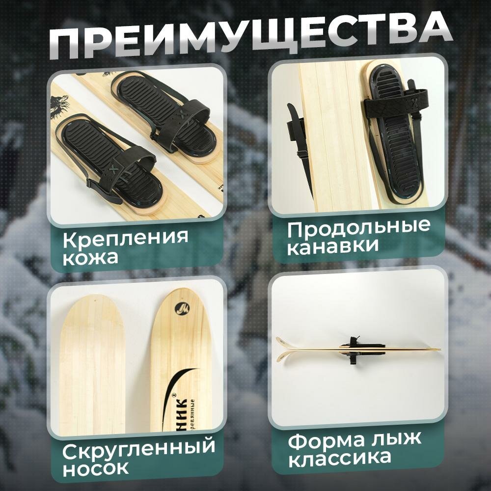 Лыжи охотничьи деревянные Маяк Лесные 175 х 11 см с креплением кожа с пяткой