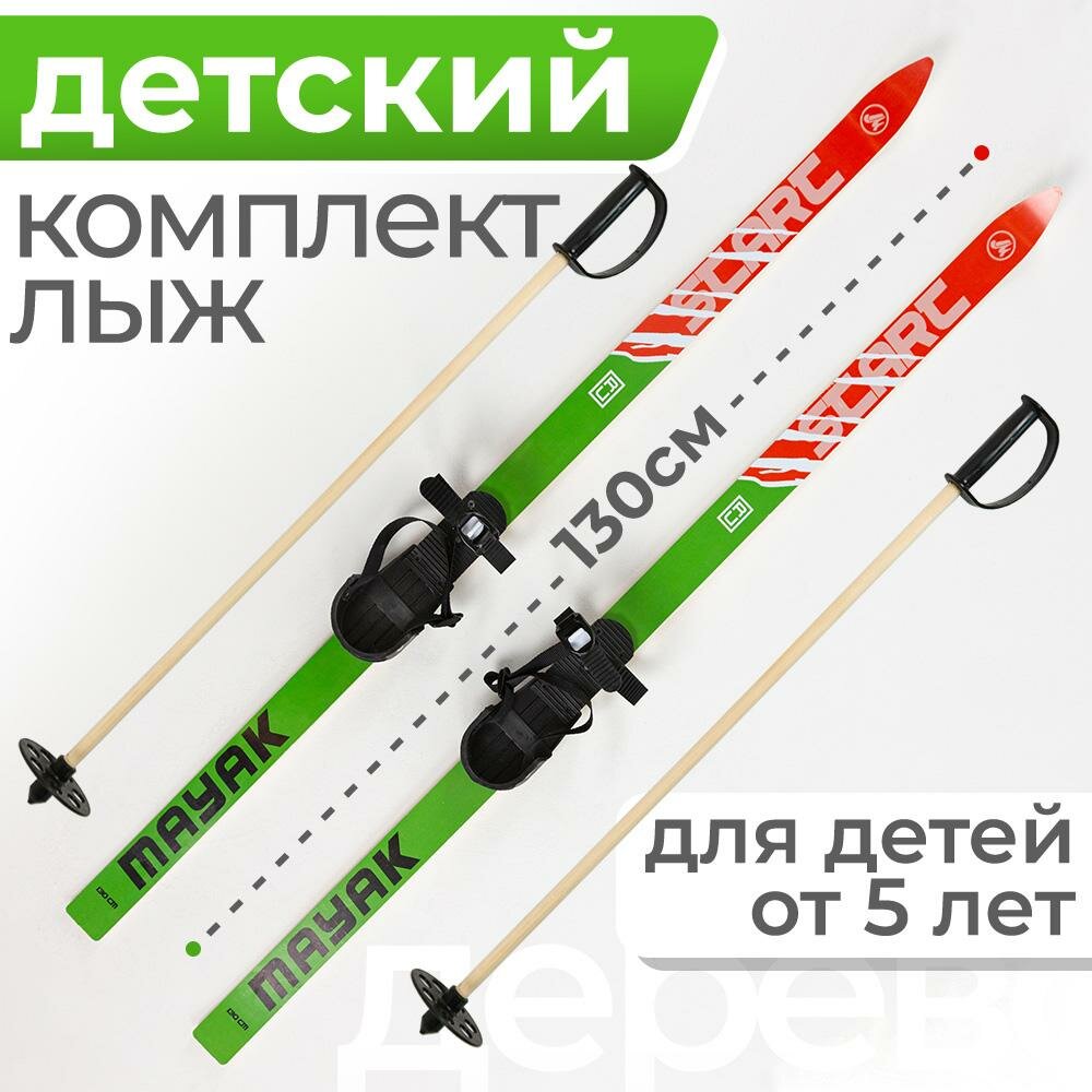 Отзывы на Детский лыжный комплект Маяк JUNIOR 130 см дерево с палками и с креплениями резиновая пятка, зеленые / Беговые лыжи