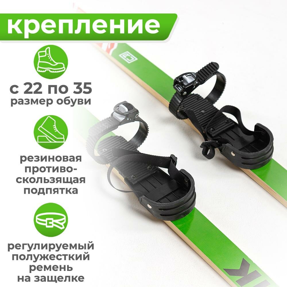 10 цен на Детский лыжный комплект Маяк JUNIOR 130 см дерево с палками и с креплениями резиновая пятка, зеленые / Беговые лыжи