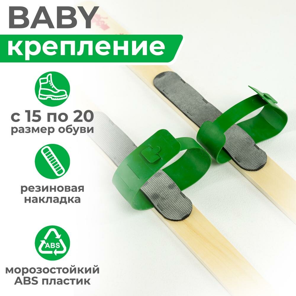 10 цен на Детский лыжный комплект BABY 70 см деревянные с креплениями и палками, зеленые / Беговые лыжи