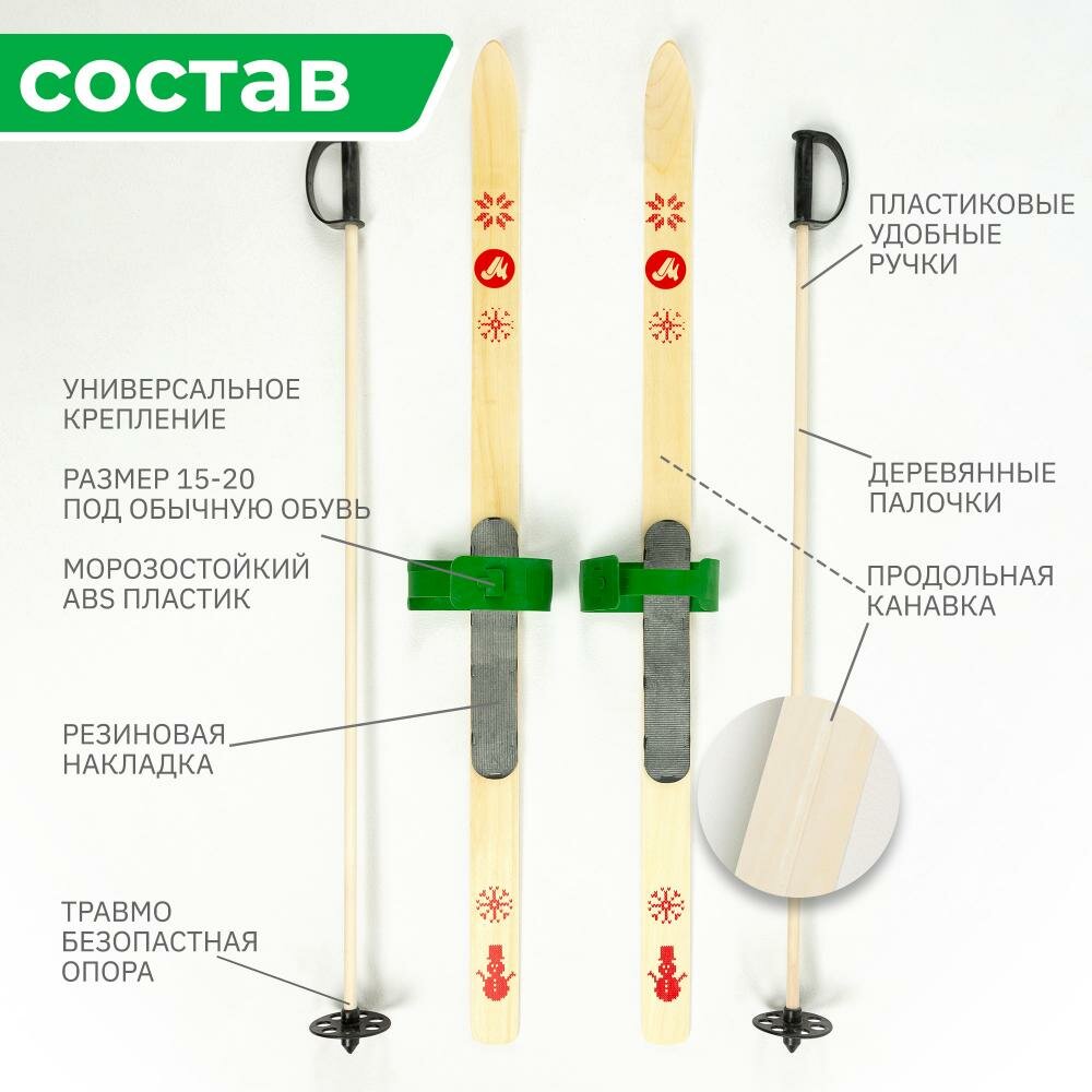 10 цен на Детский лыжный комплект BABY 90 см деревянные с креплениями и палками, зеленые / Беговые лыжи