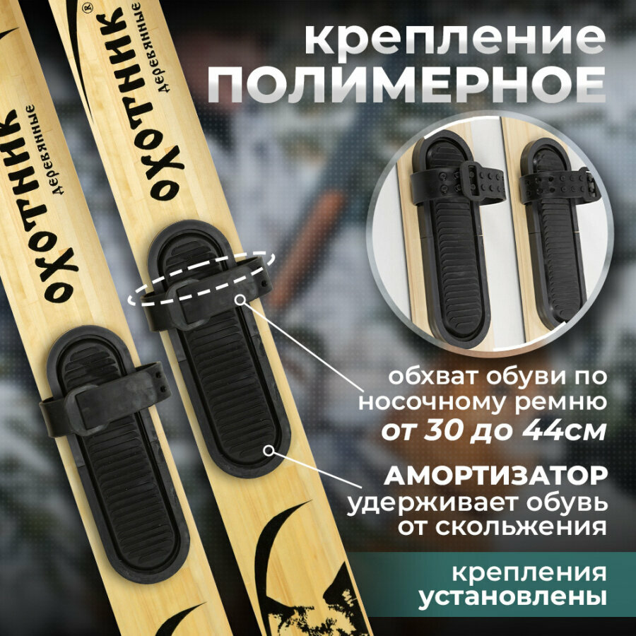 Лыжи охотничьи взрослые Маяк охотник 165х15 см дерево + полимерные крепления / промысловые лыжи информация: