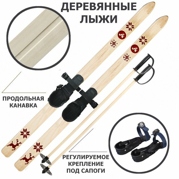 Лыжный комплект дерево Зима красный 110см + крепление с резиновой пяткой + палки 90см информация: