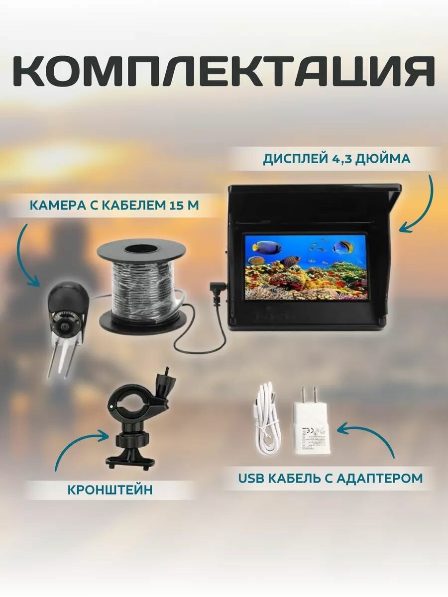 Отзывы на Подводная камера для рыбалки FF6 15 м, комплект подводной рыболовной камеры с 4,3-дюймовым ЖК-монитором для зимней и летней
