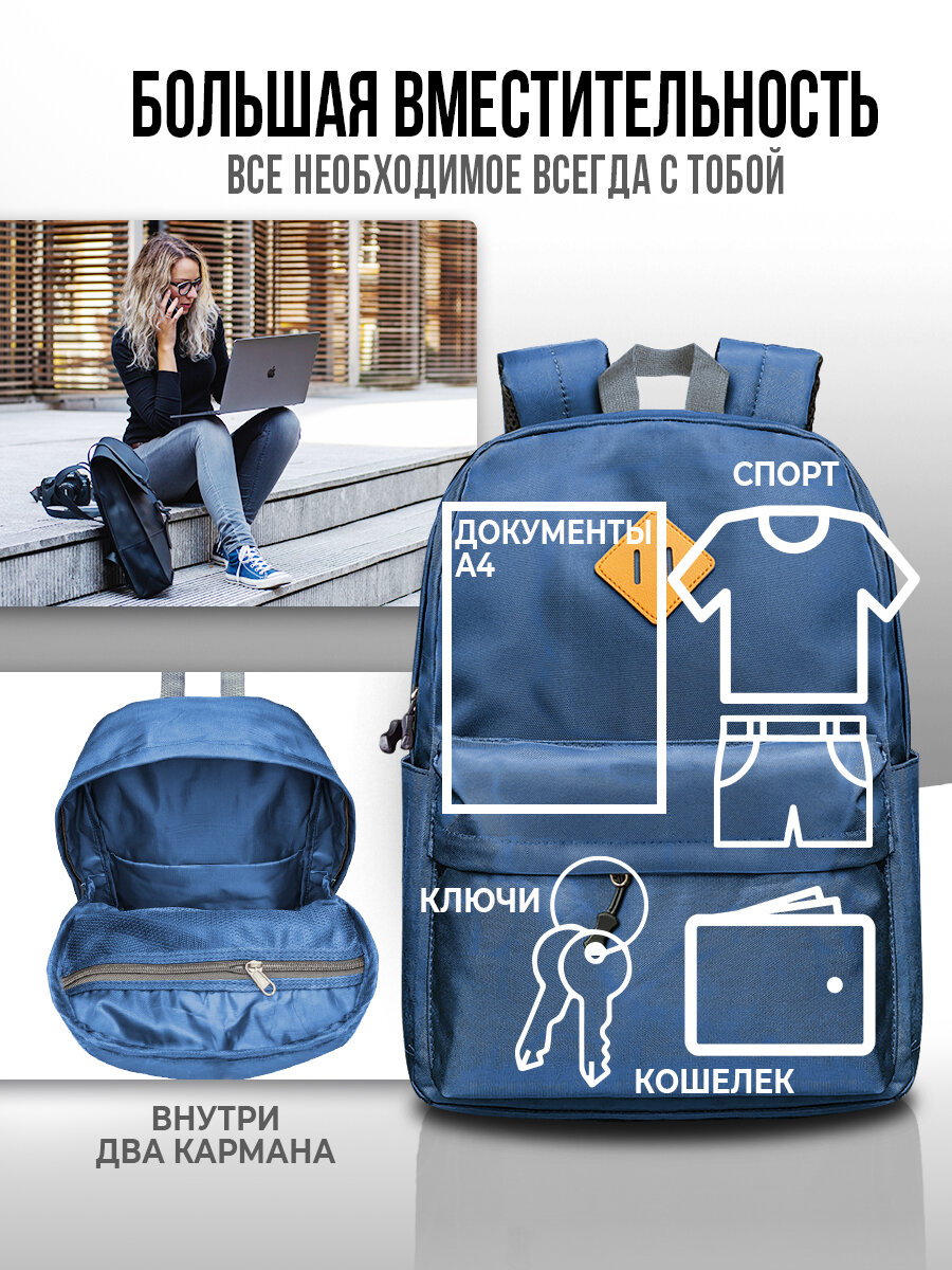 Рюкзак школьный спортивный портфель для ноутбука городской синий информация: