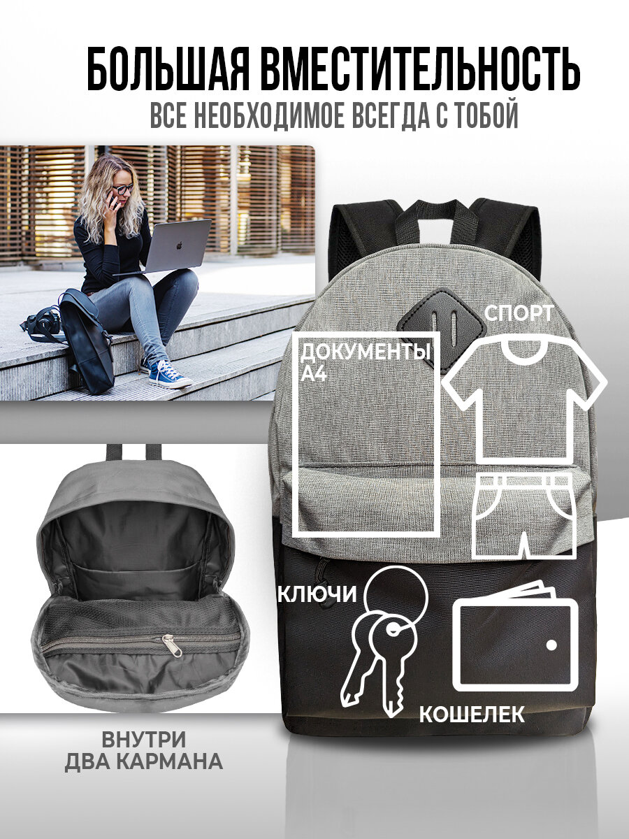 Рюкзак школьный спортивный портфель для ноутбука городской серый информация: