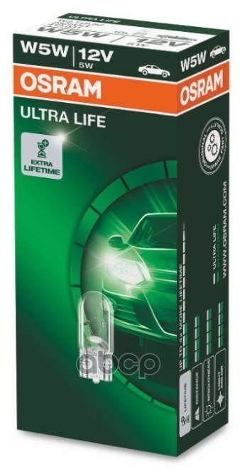 Лампа Накаливания Сигнальная W5w W2.1x9.5d Ultra Life 12V 5W Картон 10Шт (Цена За Шт) 2825Ult Osram арт. 2825ULT