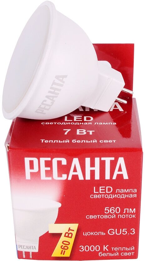 Отзывы на Лампа светодиодная LL-R-MR16-7W-230-3K-GU5.3 (рефлектор, 7Вт, тепл., GU5.3) Ресанта, , Шт