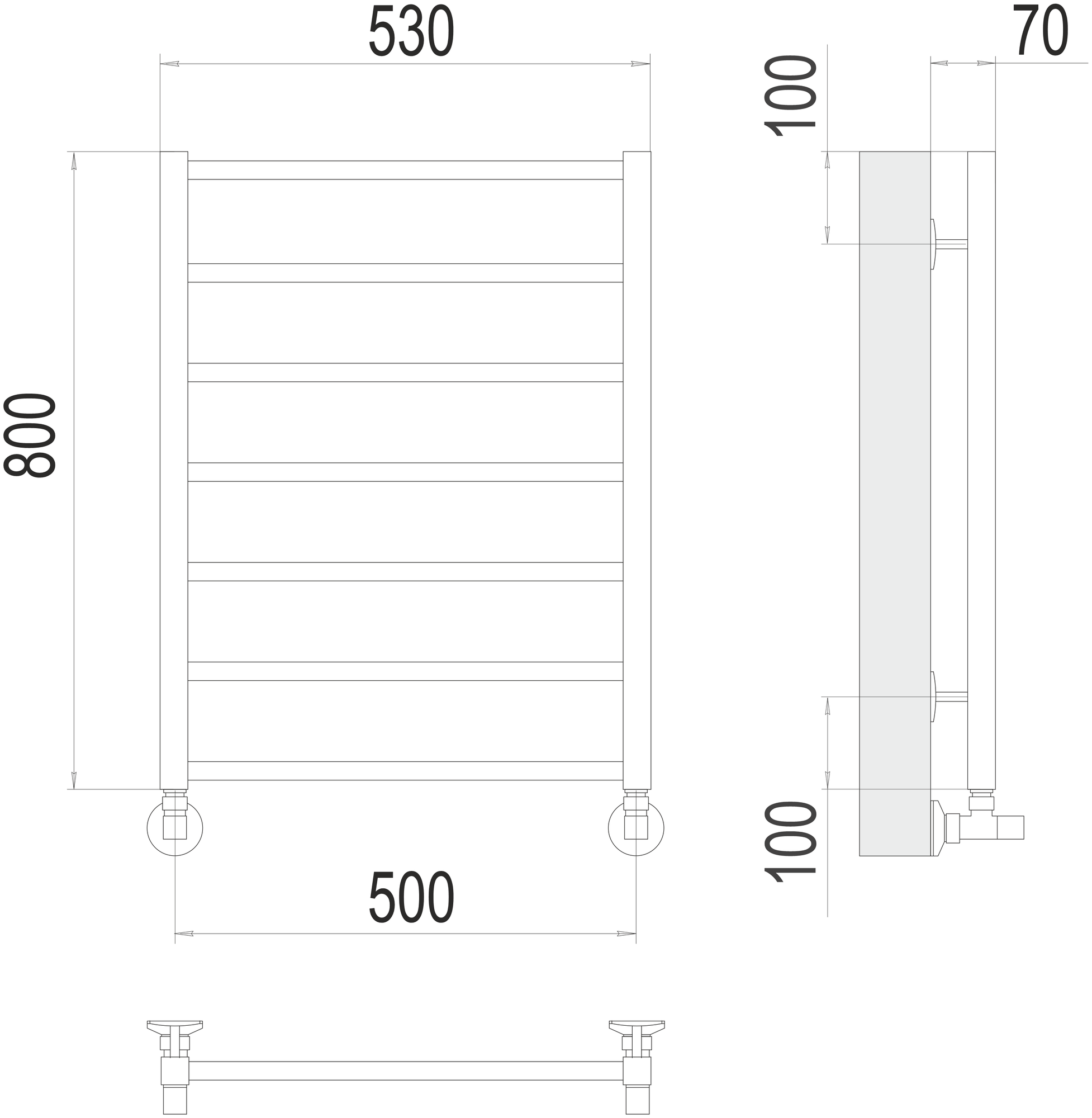 Контур полотенцесушитель TERMINUS (530 мм / 800 мм / 500 мм)