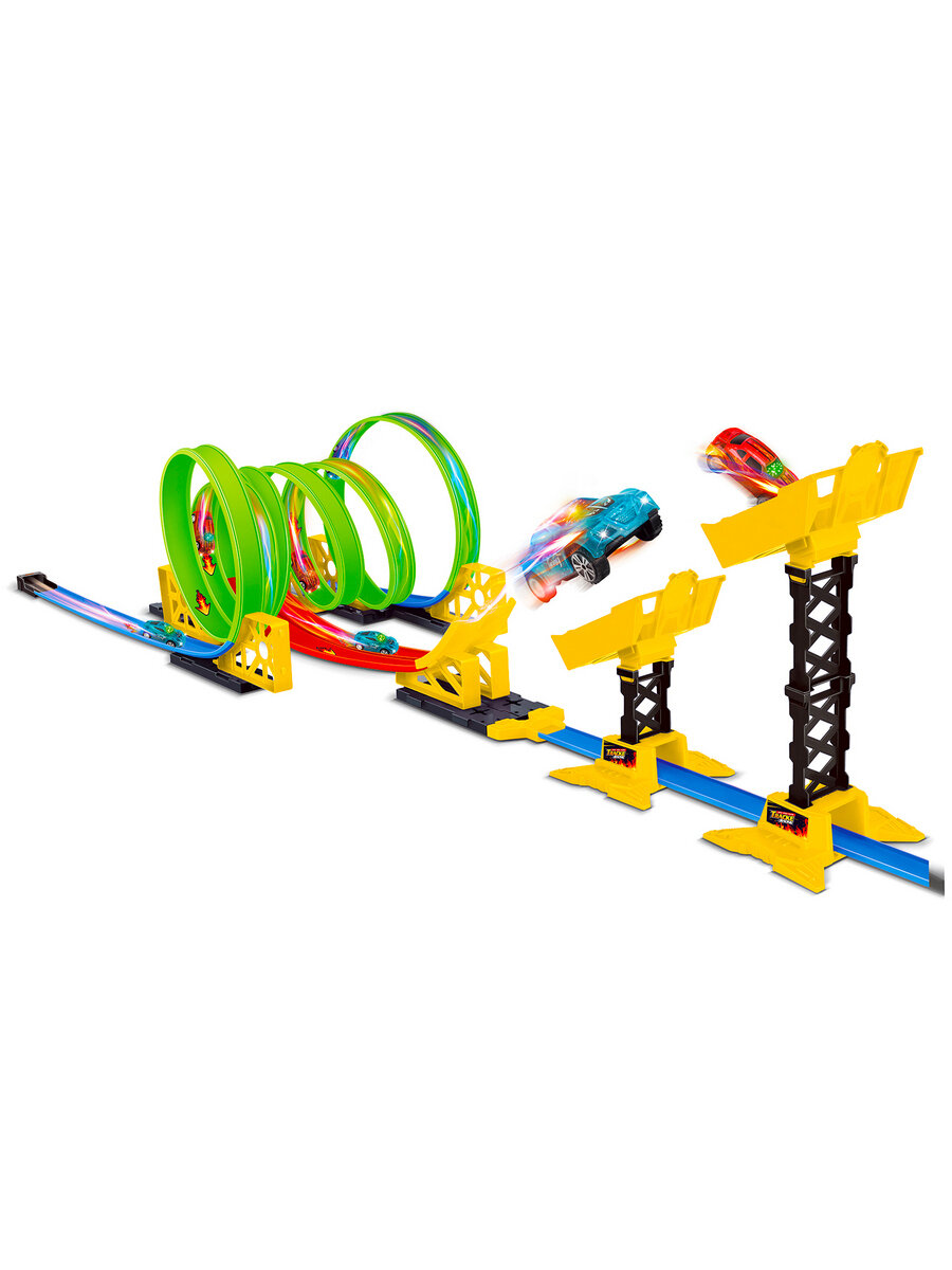 Автотрек с машинками Handers "Большой комплекс", 45 деталей, длина трассы 550 см, светится, 2 светящиеся машинки информация: