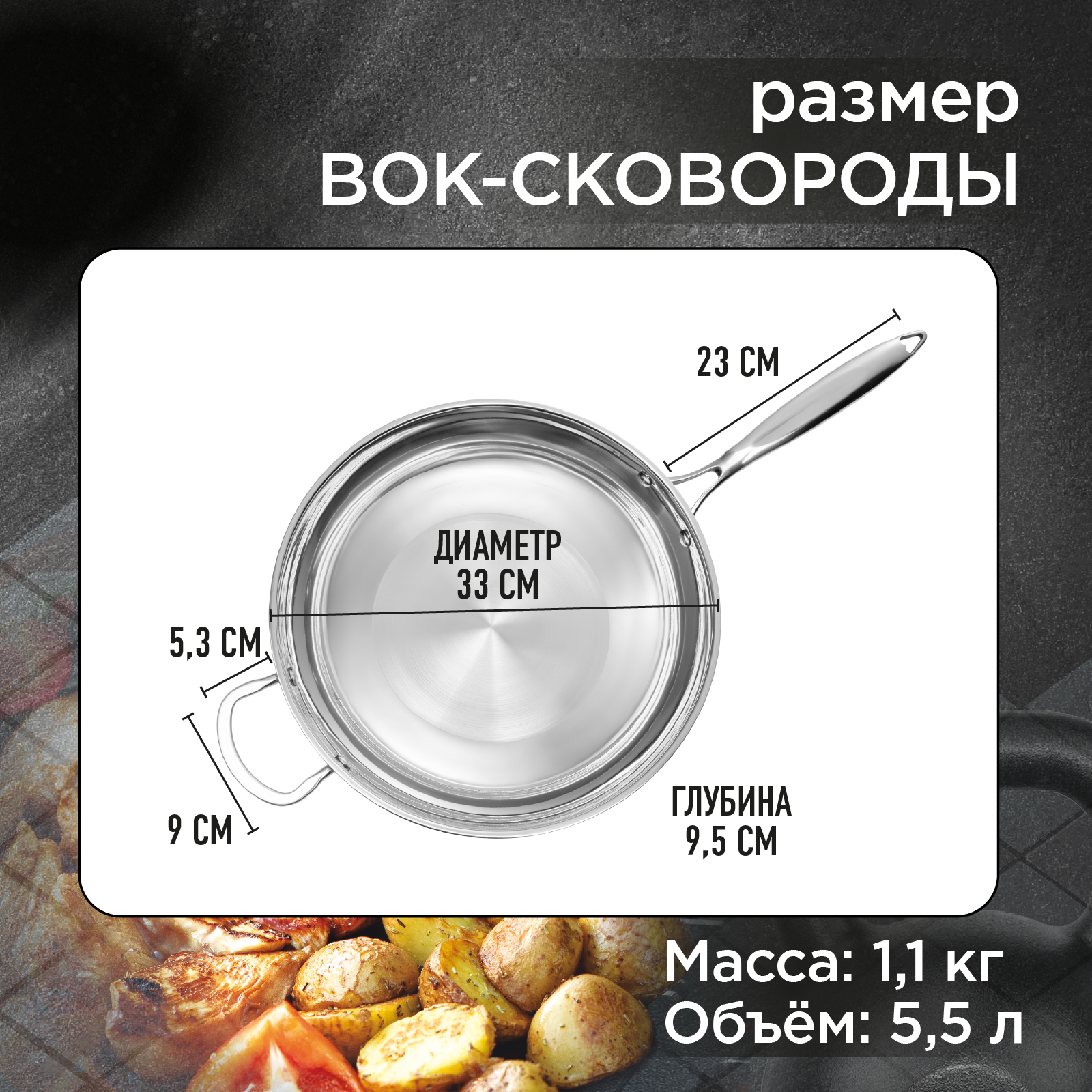 10 цен на Вок из нержавеющей стали FORESTER диаметр 33 см, с длинной ручкой
