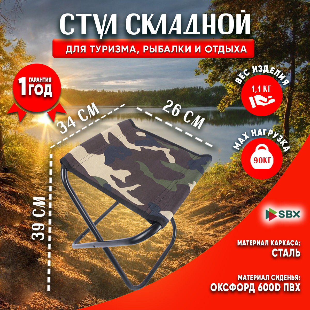 Табурет складной туристический SBX ST-02, выдерживает нагрузку до 90 кг., цвет Камуфляж информация: