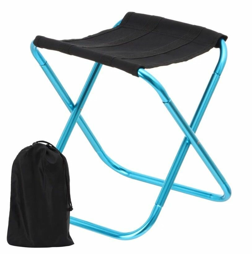 Складной стул туристический со спинкой для рыбалки и пикника голубой / складное кресло