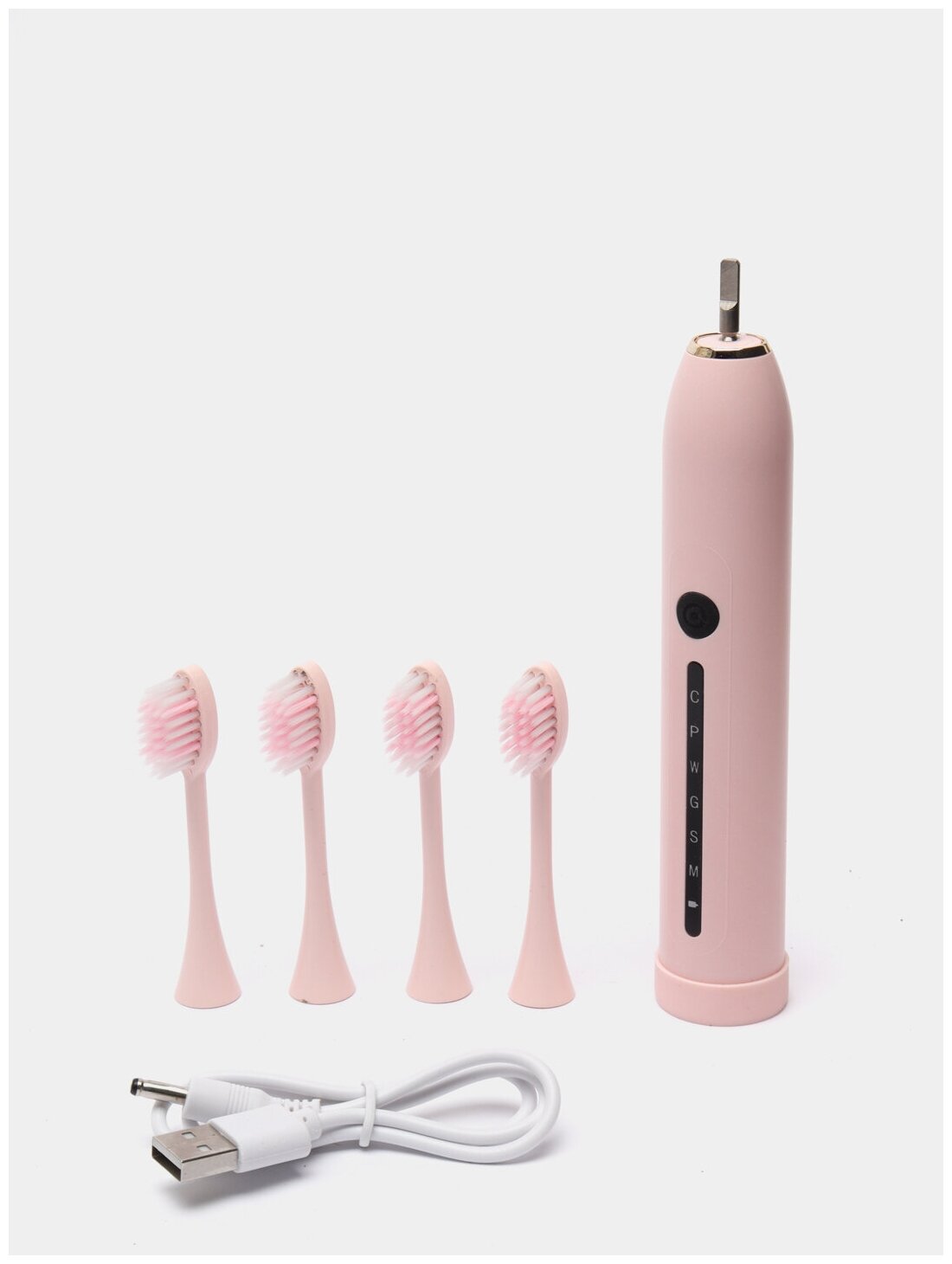 Электрическая ультразвуковая зубная щетка / 4 насадки / Зубная щетка / SONIC TOOTHBRUSH X7, розовый