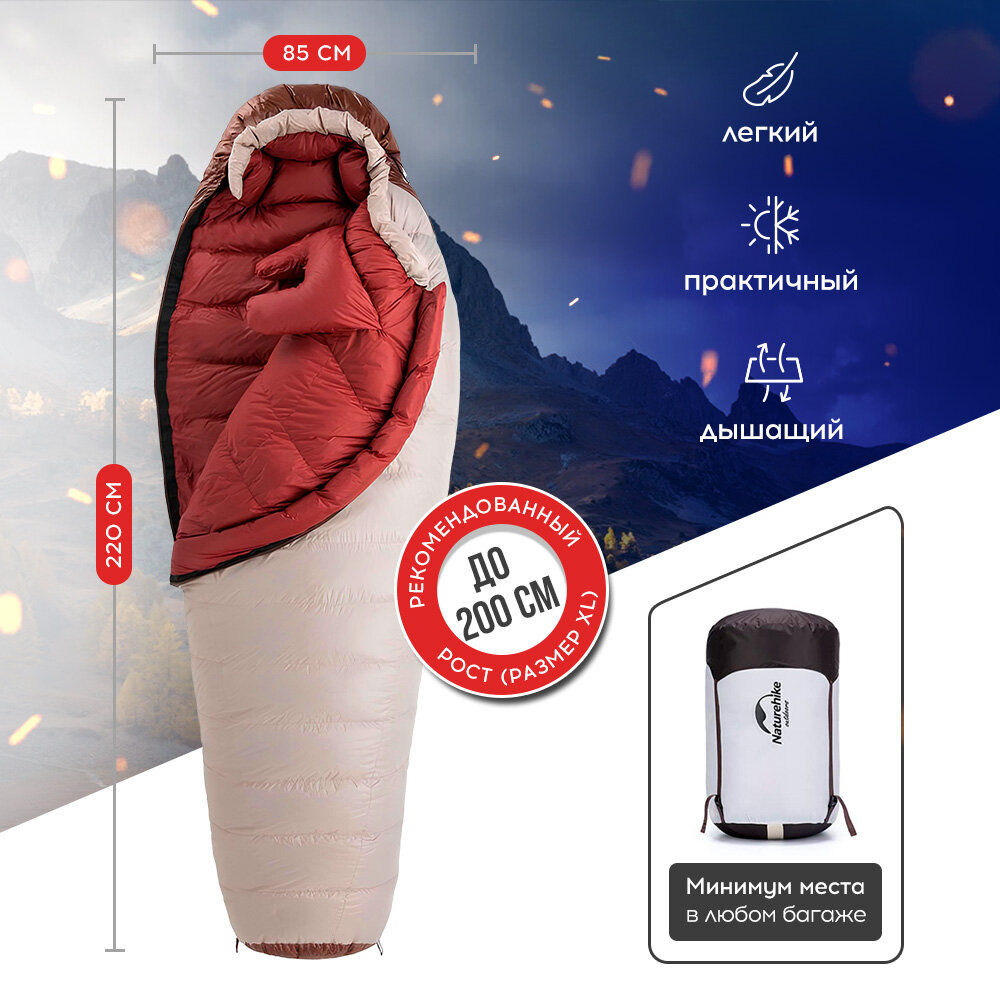 10 цен на Мешок спальный Naturehike SnowBird, 220х85 см, XL (800G), (правый) (ТК: -3°C), серый/коричневый