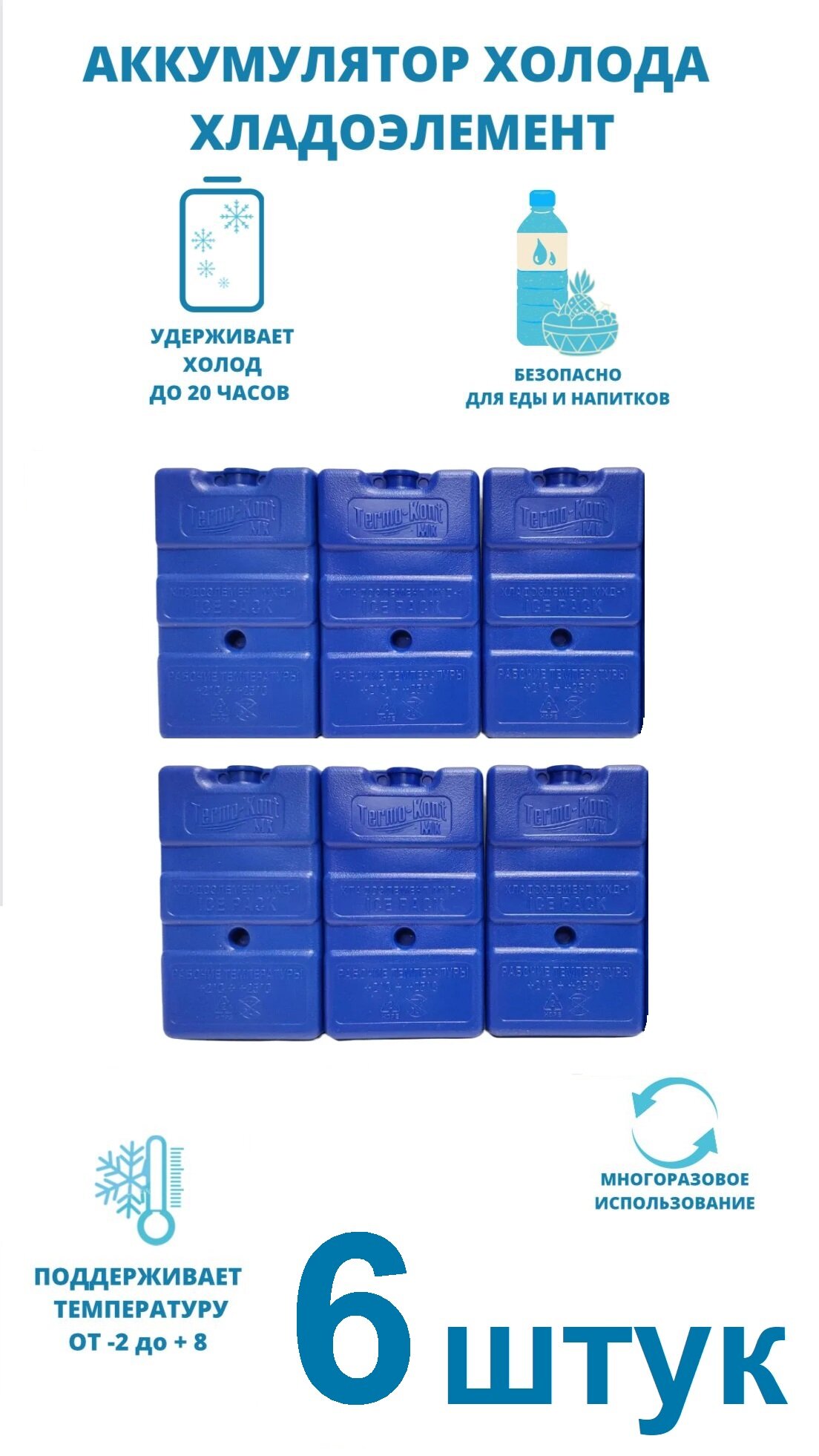 Аккумулятор холода 6 штук / Хладагент / Генератор холода / Хладоэлемент МХД-1, 440 мл информация: