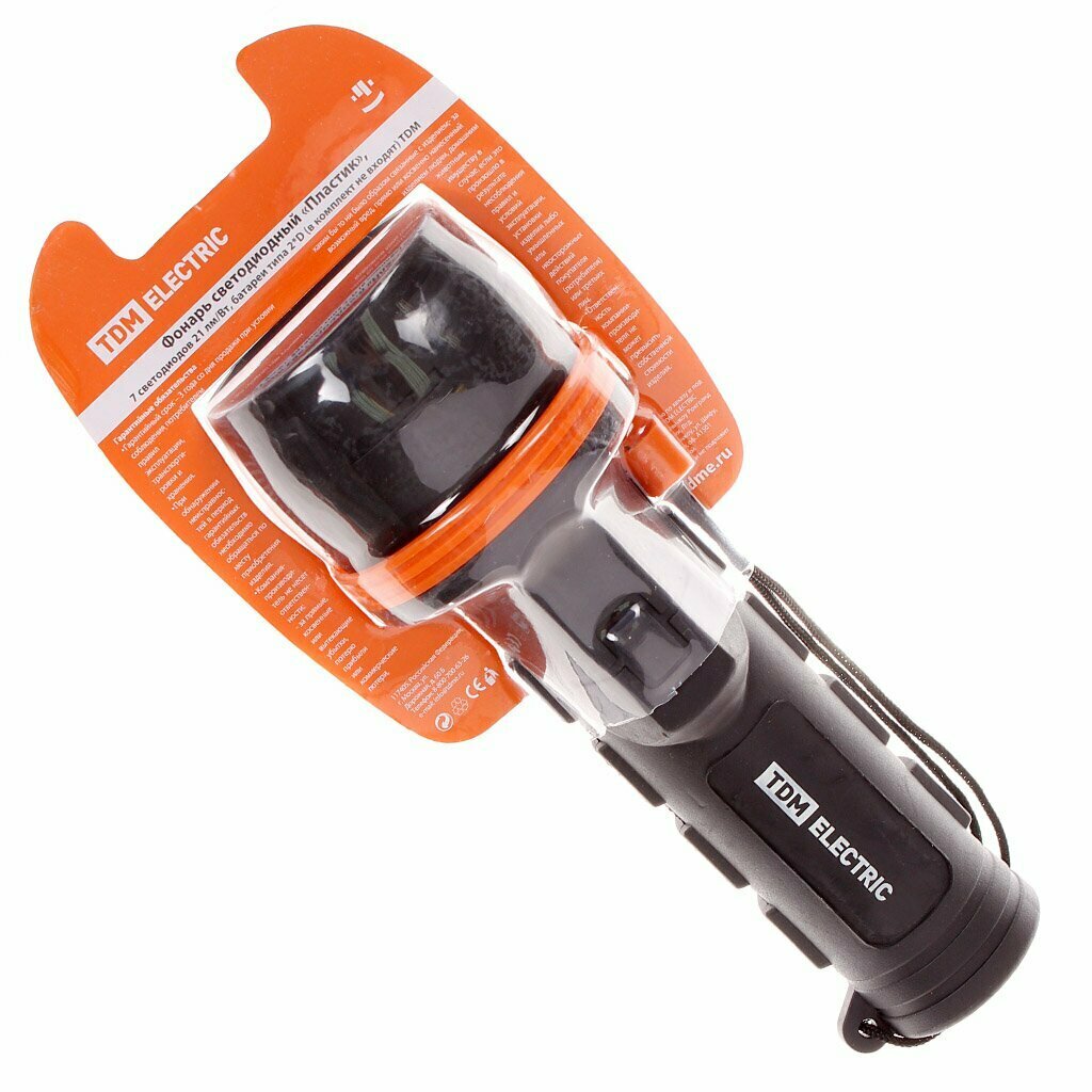 Отзывы на Фонарь светодиодный "Пластик", 7 светодиодов 21 лм/Вт, батареи типо 2*D (в комплект не входят), TDM SQ0350-0015 (1 шт.)