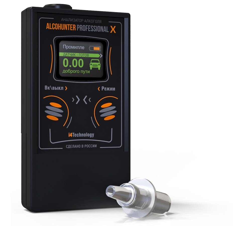 Алкотестер AlcoHunter Professional X Профессиональный цифровой алкотестер с мундштуками (Цветной дисплей, в промилле, %ВАС или мг/л, японский датчик) информация: