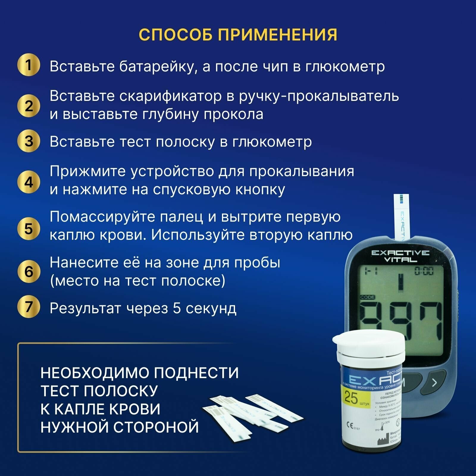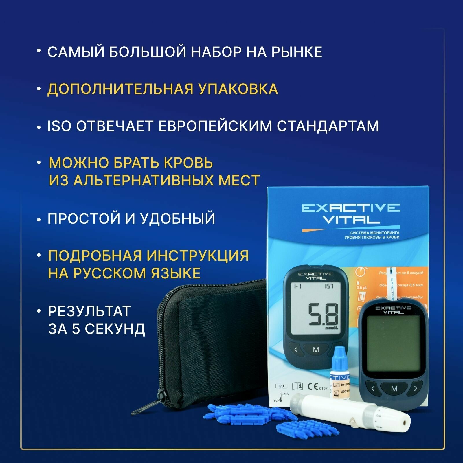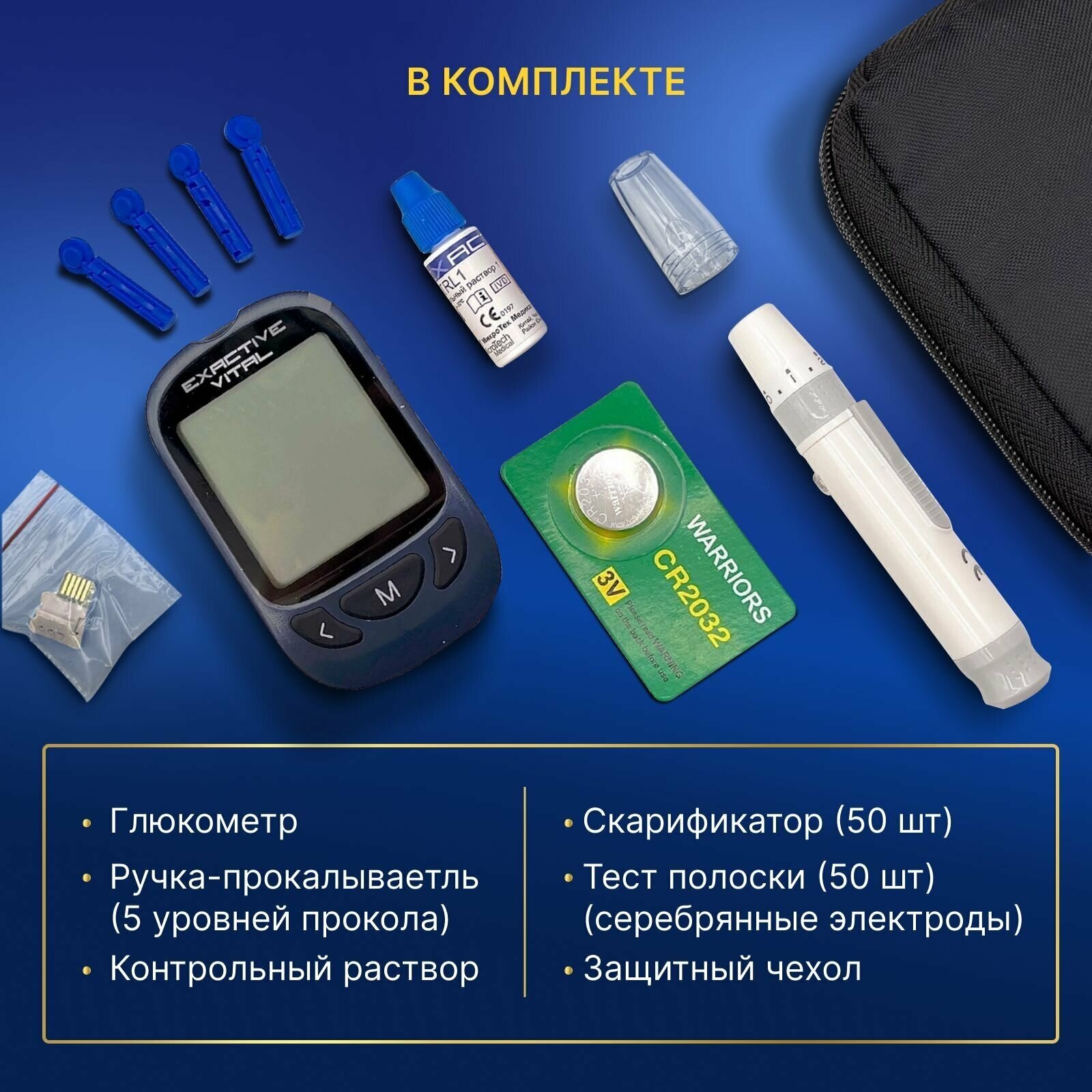 Глюкометр Exactive Vital медицинский прибор для здоровья измерения сахара в крови + 50 тест полосок информация: