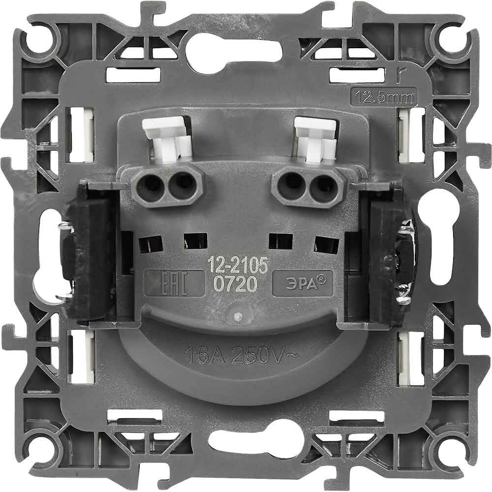 Розетка силовая штепсельная ЭРА 12 12-2105-12, 16А-250В IP20 графит 2P, скрытого монтажа без заземления, Б0019335 488 ₽