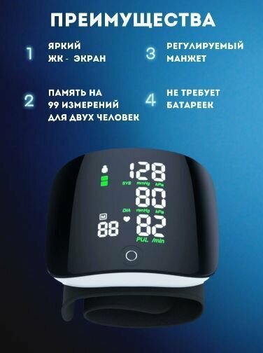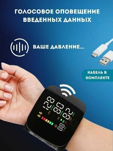 Тонометр на запястье с манжетой, черный / Тонометр для измерения давления с русским голосовым сопровождением информация: