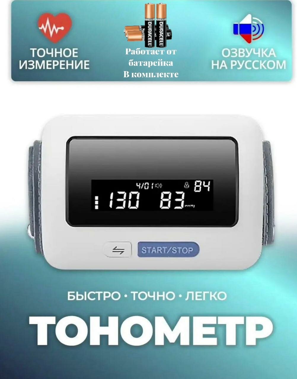 Тонометр автоматический / Тонометр для измерения давления на запястье/ Русское голосовое оповещение
