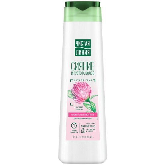 Чистая линия бальзам-ополаскиватель Шелковистый блеск для окрашенных волос Клевер, 230 мл